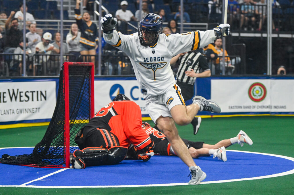 Justin Ivey, Co-Editor Lacrosse is Awesome© The Georgia Swarm finished the season as the #4 seed this year, and as a reward they welcomed the three-time defending champion Buffalo Bandits, the #5 seed, in the opening round. The Saturday night game was the first home playoff game for the Swarm since 2019. Buffalo had been playing playoff-style lacrosse for weeks after an early-season slump forced them to play catch-up. Georgia…
