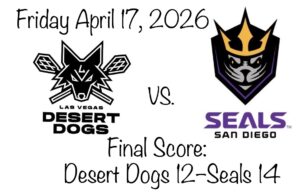 The San Diego Seals travel to play the Las Vegas Desert Dogs on Saturday, April 18 at 10:00 PM EDT.