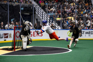 After a few minutes of back-and-forth action, Halifax broke the tie. Withers scooped a loose ball and took off alone down the floor. His unassisted goal gave Halifax their first lead of the game, and they never looked back. Petterson increased the lead to two with 6:22 left, and Robinson added his second of the game 18 seconds later. The Thunderbirds outshot the Warriors 71-43 and held them scoreless in the second half on the way to their second consecutive NLL Semifinals appearance. Final Score: Halifax Thunderbirds – 10, Vancouver Warriors – 7.